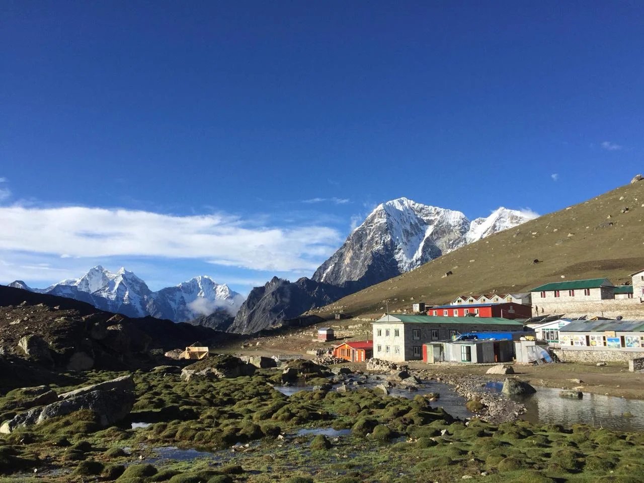 The next couple of days involved stays at a tea house at Lobuche (with allegedly the world’s highest bakery), followed by Gorak Shep (the 1953 expedition’s base camp location). From Gorak Shep, at 5,200 metres and dizzy from some cheeky altitude sickness, we trekked towards the apex of our adventure: Everest Base Camp. It was a tough trek, but absolutely worth it to stand at the foot of the world’s tallest mountain, surrounded by snow-capped peaks and new friends. Nonetheless, the trip wasn’t over, as we awoke at Gorap Shep at 3am the following morning to climb Kala Pattar, a small peak meaning ‘black rock’. This was by far the most physically demanding part of the trek, with a consistent boulder-laden incline, but again well worth it to watch the sun rise over Everest and the Khumbu glacier.